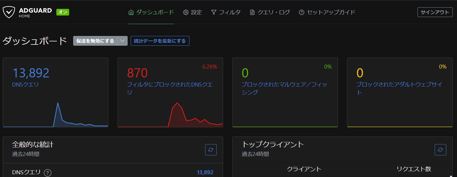 チューニングのさせ方次第ではありますが、LAN内全部の通信をAdGurard Homeを通すのは、少し様子見しようと思います。アクセスの際にブロックリストを走査するため、少なからず遅延が発生するため、オンラインゲームなどで影響があるかも。